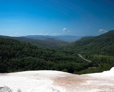 Mais une fois en haut, l'effort en vaut largement la peine. On profite d'une vue plongeante spectaculaire sur les montagnes environnantes et sur tous les toits d'Alet-les-Bains. C'est le spot parfait pour les photographes !