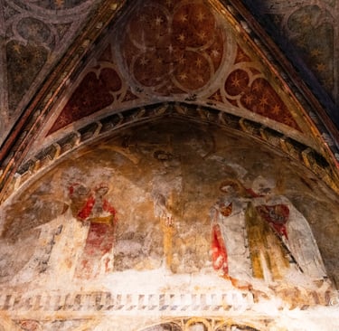 Levez les yeux vers les vitraux. Pour les curieux qui prennent le temps de faire le tour de l'édifice par l'extérieur, certains vitraux révèlent des formes de pentacles, un détail architectural intrigant qui rappelle que rien n'est laissé au hasard dans ces constructions médiévales.