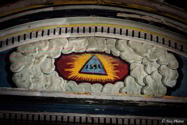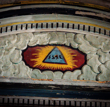 Symbolique héraldique : Chaque élément sculpté, du triangle trinitaire aux socles de pierre, porte l'empreinte de la tradition et du rang de la demeure féodale.