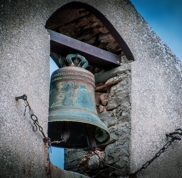 Le Bronze Sacré (1613) : Une cloche magistrale dont les inscriptions en relief attestent d'une commande seigneuriale prestigieuse, réalisée au sortir des guerres de religion.
