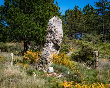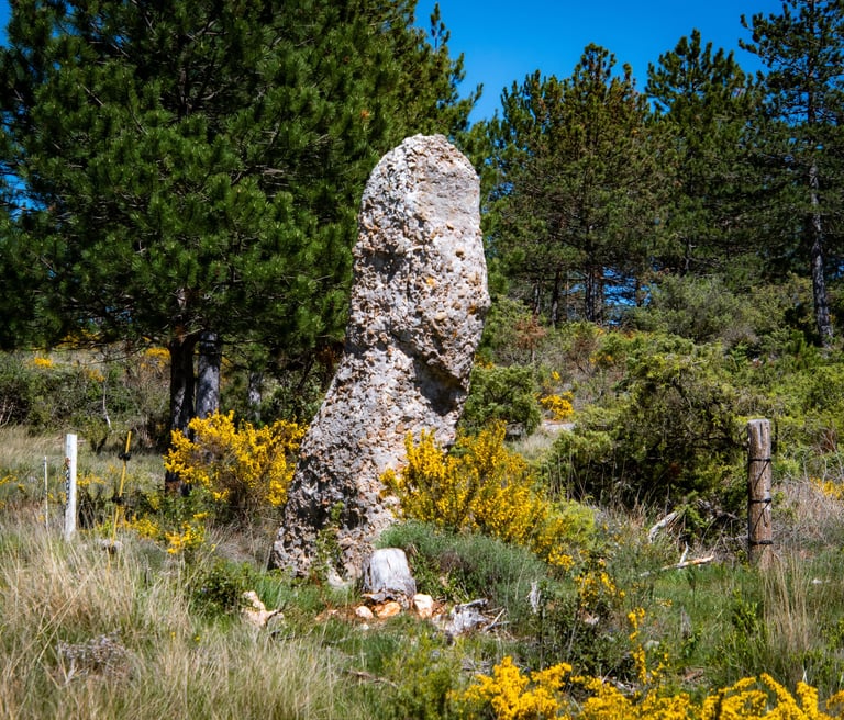 Élément phare du patrimoine mégalithique local , le menhir de Peyrolles tire son nom de la racine languedocienne peiro (pierre), marquant l'identité même du village. Cette sentinelle de roche témoigne d'une occupation humaine très ancienne, à l'image des célèbres "pierres fiches" que l'on retrouve dans l'Aude. Pour les randonneurs, il constitue un point de repère fascinant, entouré de légendes encore vivaces.